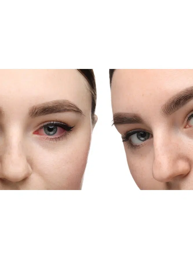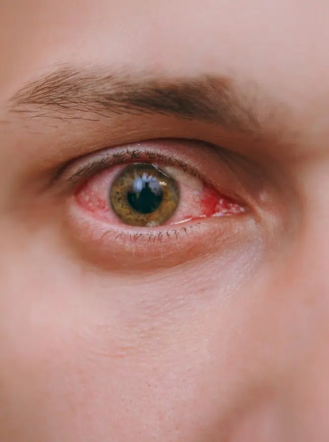 Dans sa forme bactérienne, elle se manifeste par un écoulement purulent et des paupières collées au réveil. La conjonctivite virale, plus fréquente, provoque une rougeur diffuse, une sensation d’irritation et parfois un larmoiement. La forme allergique entraîne des démangeaisons, un larmoiement clair et des yeux rouges, généralement en réaction au pollen ou à la poussière. Enfin, la conjonctivite irritative, déclenchée par des produits chimiques ou des corps étrangers, provoque des brûlures oculaires et une rougeur conjonctivale.