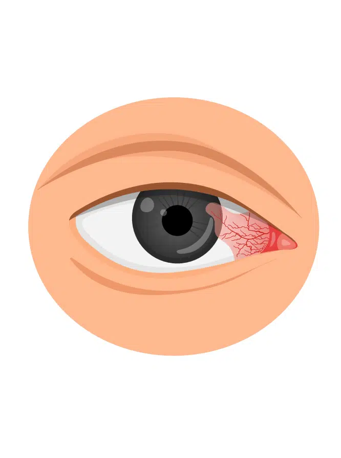 Cette excroissance peut provoquer une irritation, une rougeur persistante et une gêne visuelles et/ou esthétique. Le traitement initial repose sur l’utilisation de collyres lubrifiants ou anti-inflammatoires pour soulager les symptômes. En cas de progression ou de gêne importante, une chirurgie est indiquée pour retirer le ptérygion et limiter les risques de récidive.