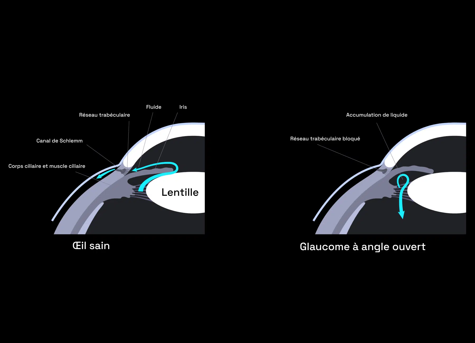 Ce type de glaucome survient quand l’angle iridocornéen est bloqué, empêchant le bon drainage de l’humeur aqueuse. La pression oculaire augmente brutalement, menaçant la structure interne de l’œil. Il s’agit d’une urgence médicale qui nécessite une réaction rapide.