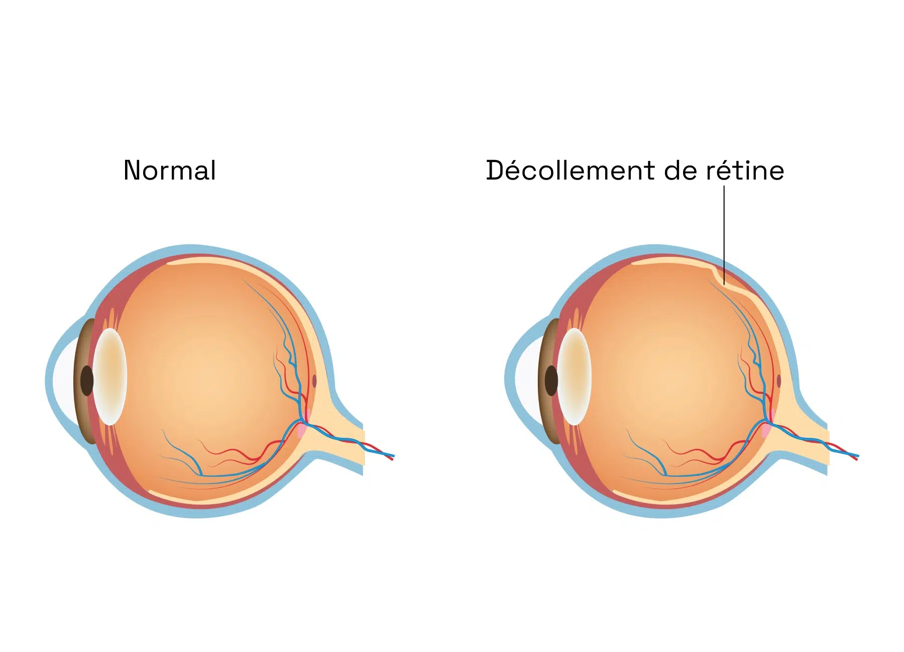 Le décollement de rétine désigne la dissociation entre la rétine neurosensorielle et son support, l’épithélium pigmentaire. Cette rupture empêche le bon fonctionnement du système visuel. Si la macula, centre de la vision, est concernée, le pronostic visuel est engagé sans traitement adapté.