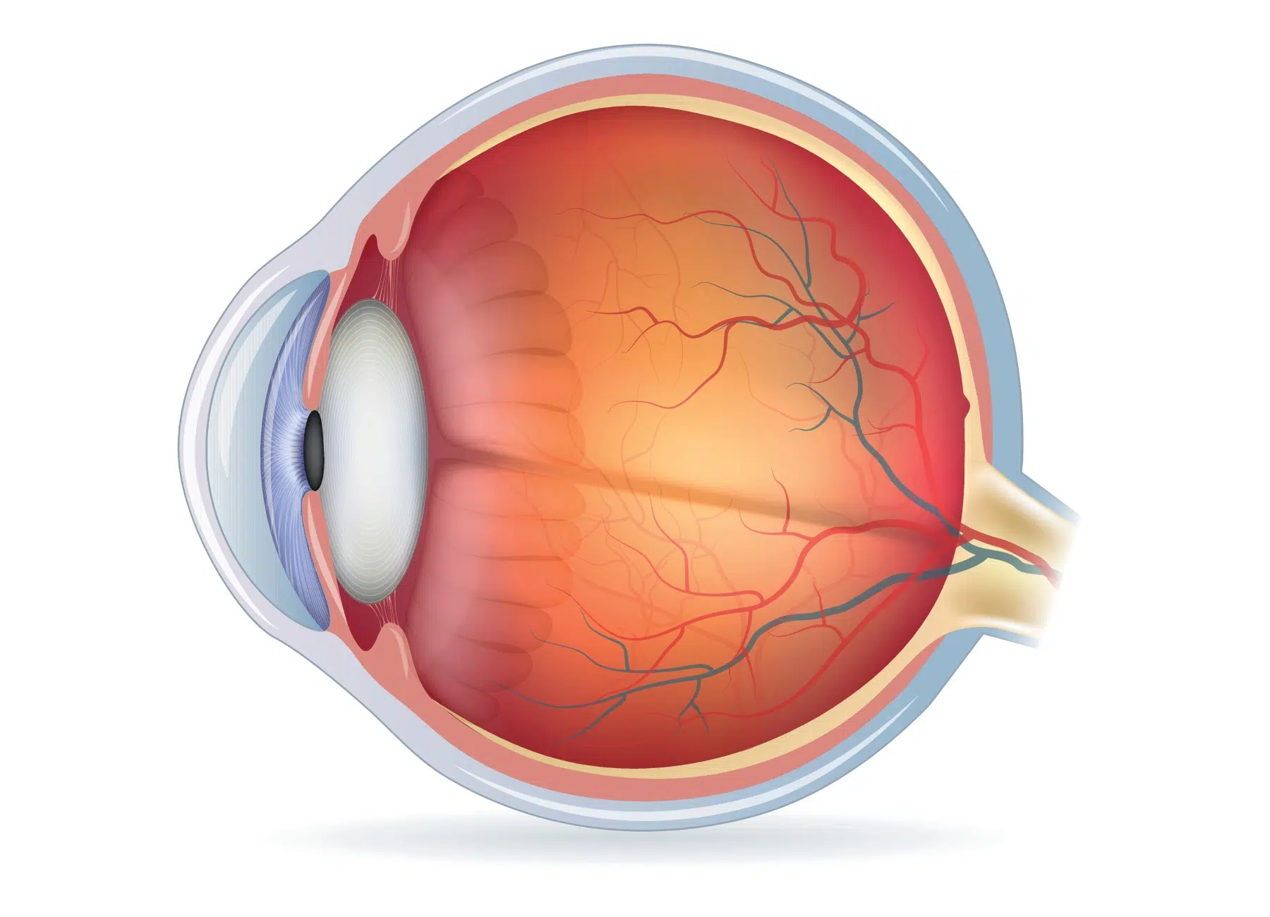 Le cristallin, situé en arrière de l’iris, est une lentille naturelle qui ajuste sa forme sous l’effet des muscles ciliaires. Ce mécanisme d’accommodation permet de passer facilement de la vision de loin à celle de près. Avec l’âge, cette capacité diminue, provoquant la presbytie.